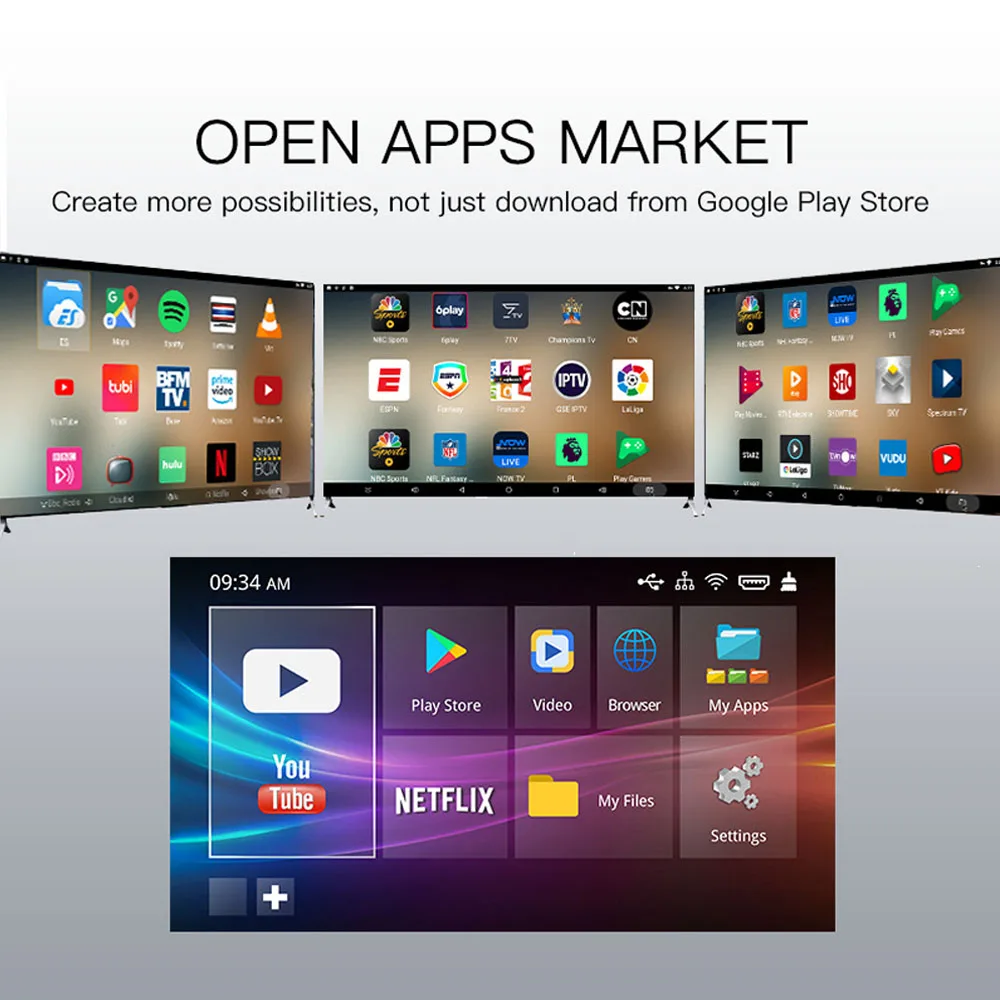 Android box tv Media Player Set-Top Box 24G 5GHz Wifi Bluetooth 4GB 32GB 64GB 6K 3D 1080P boxtv Quad Core YouTube Netflix.