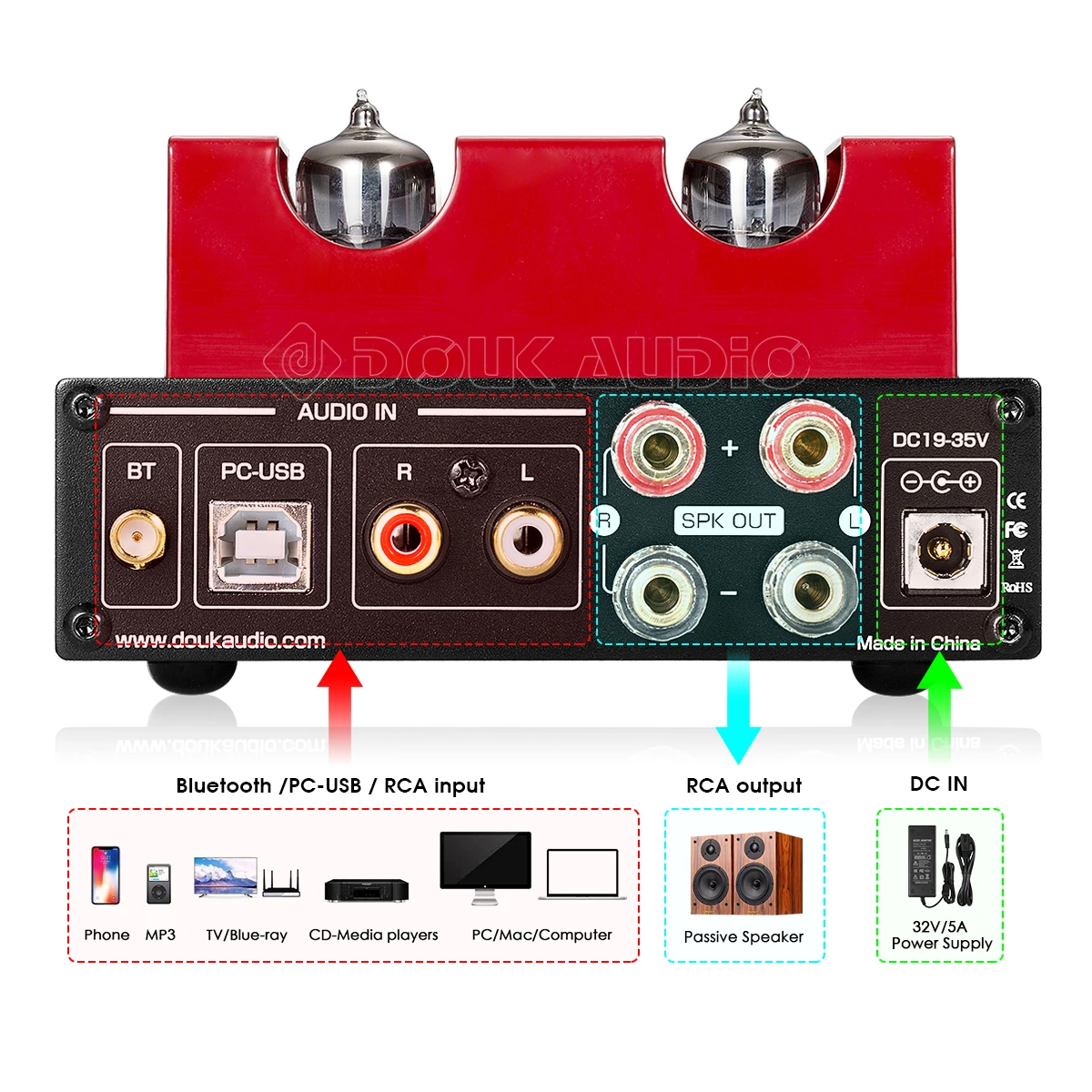 Neu Douk Audio HiFi Bluetooth 50 Vakuum Rohr Power Verstärker Hause Stereo Receiver Digital Audio Amp APTX-LL 160W + 160W