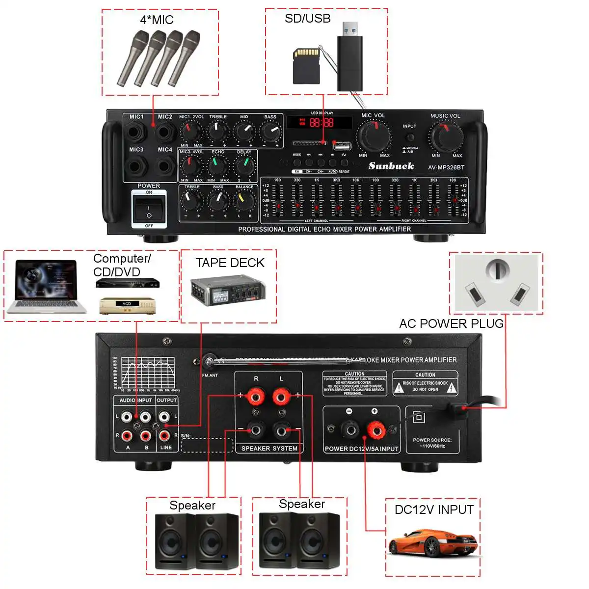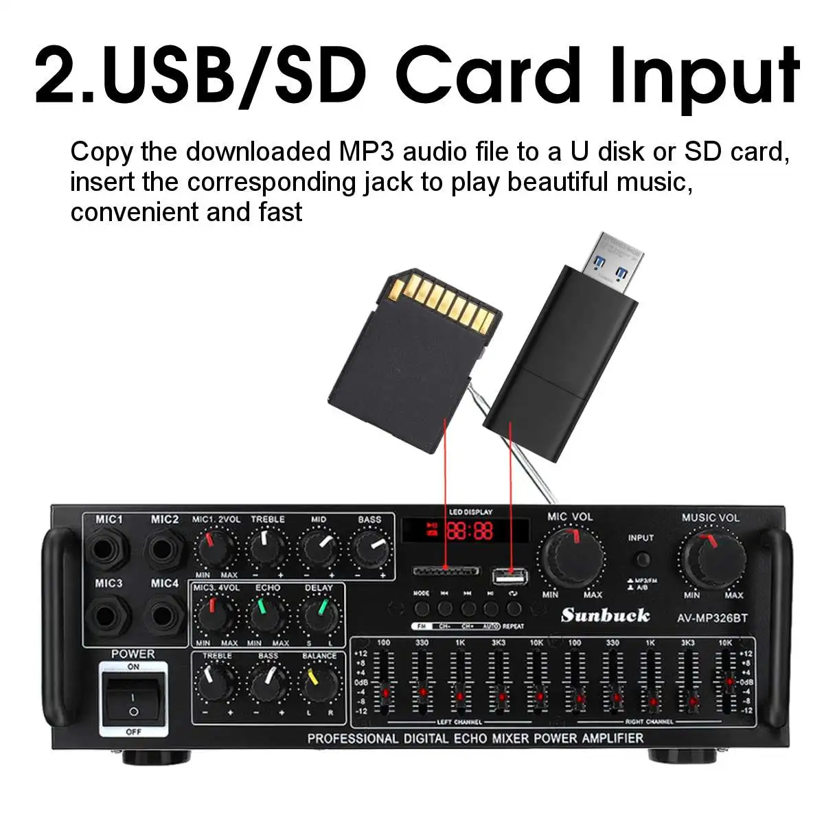SUNBUCK 2000W 50 bluetooth 2 Kanal Audio HiFi Verstärker Stereo 326BT DC 12V 220V AV Amp Lautsprecher reverb Gleichgewicht.