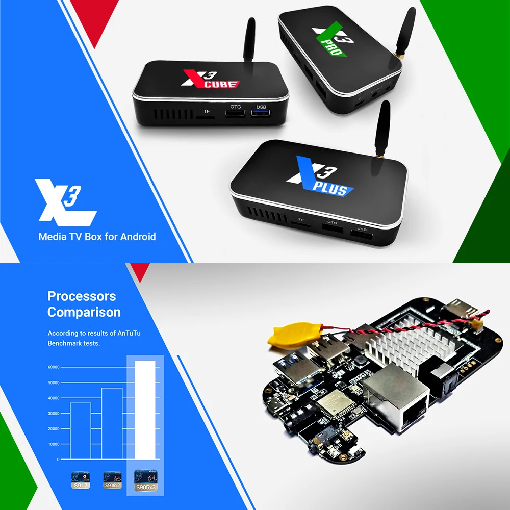 CPU: Amlogic S905X3 Quad core cortex-A55