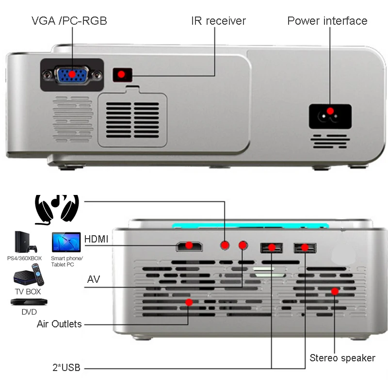 Interface Input: USB*2/HD-in/AV/VGA/Audio (3.5 mm)