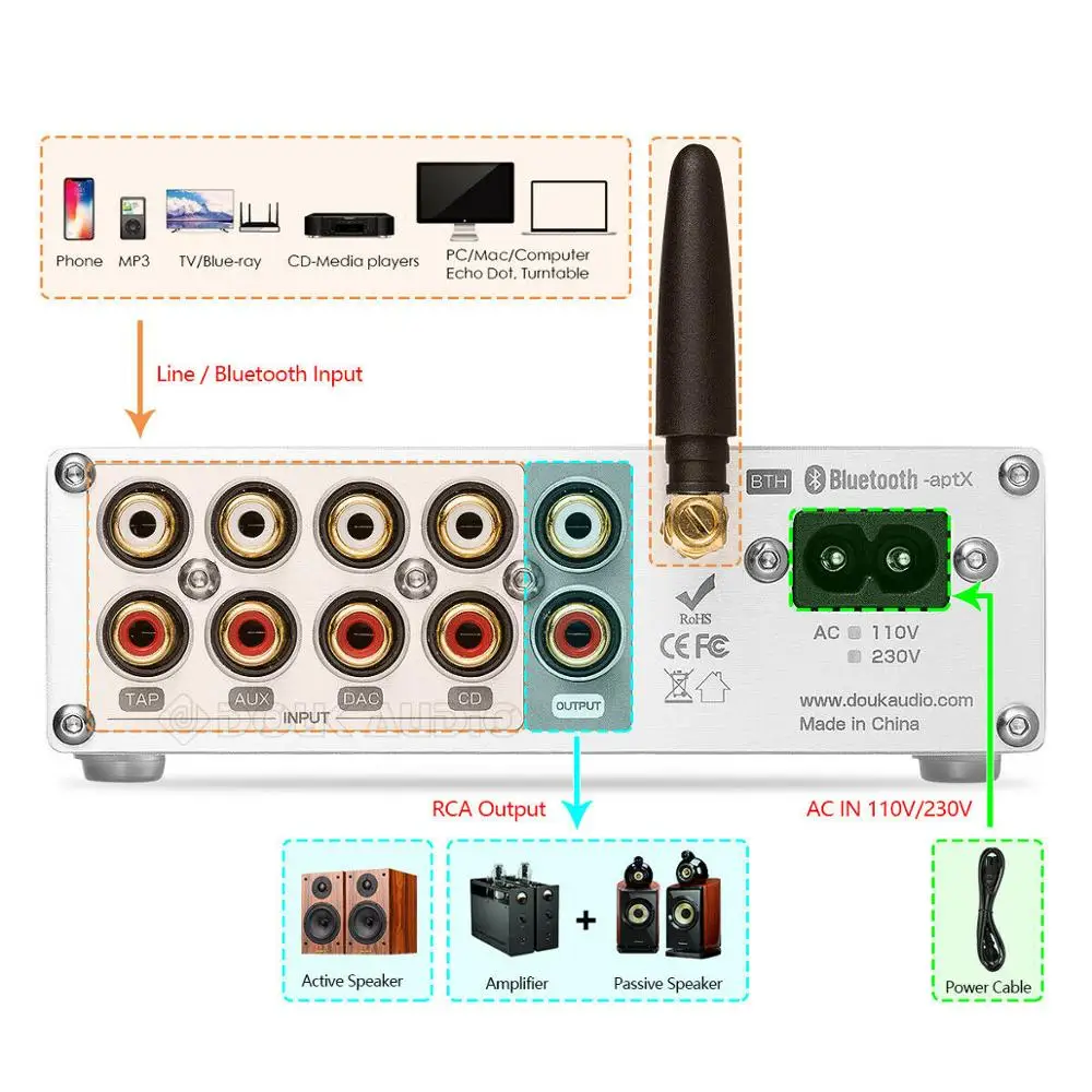 Nobsound HiFi Bluetooth 50 Stereo Preamp Hause Audio Vorverstärker 128-Niveau Relais APTX-LL Mit Ir-fernbedienung.