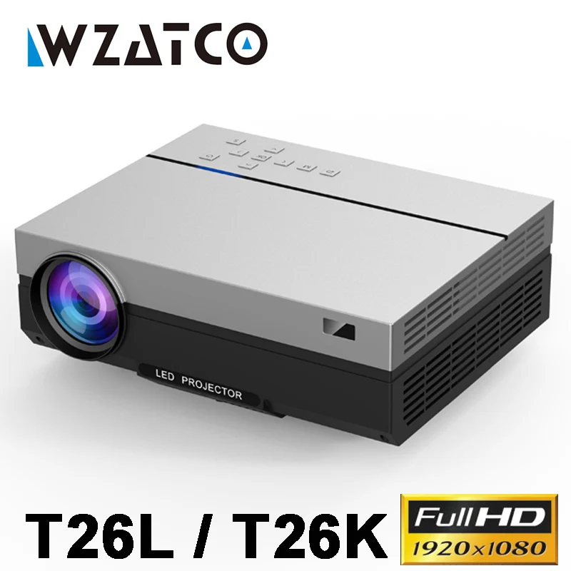 Billig WZATCO T26L 4K Volle HD 1080P LED Projektor 1920x1080P Android 100 WIFI AC3 200 zoll 5500lumen Video Proyector für Heimkino