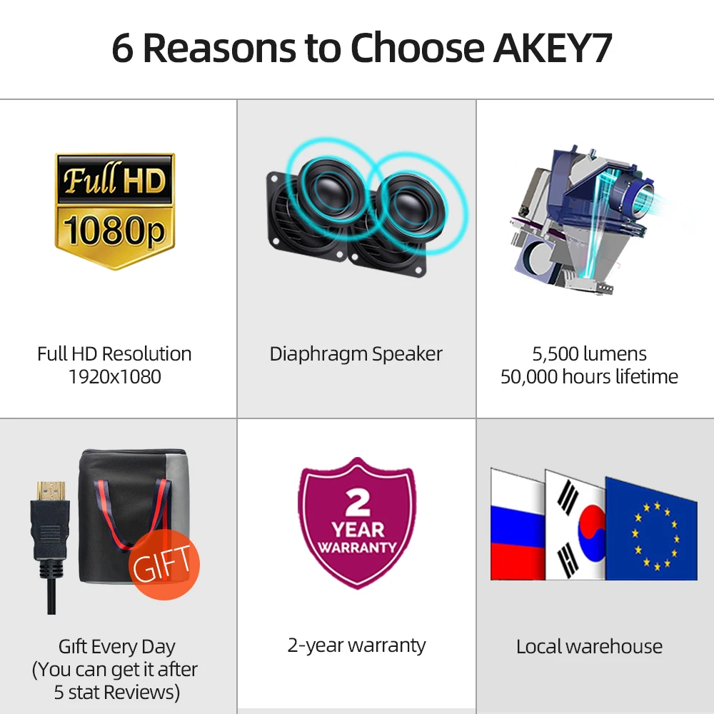 Bonus 2020 AUN Full HD Projektor AKEY7. 1920x1080P Beamer. 4K 1080P Vedio LED Projektor für HDMI Port. TV X96Q Android 10 Home Cinema