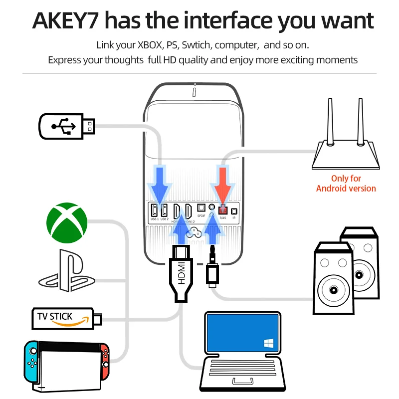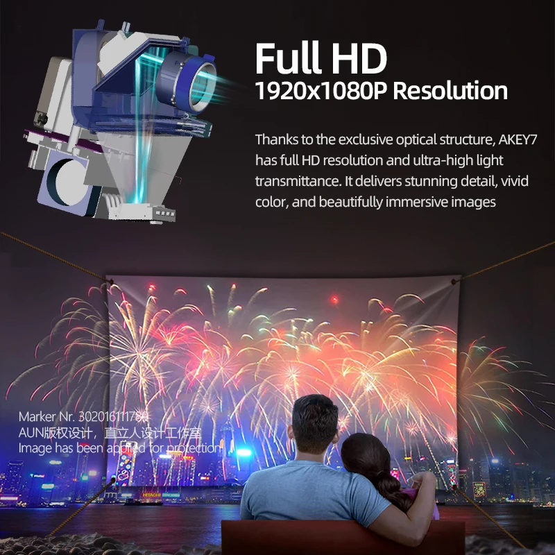 2020 AUN Full HD Projektor AKEY7. 1920x1080P Beamer. 4K 1080P Vedio LED Projektor für HDMI Port. TV X96Q Android 10 Home Cinema.