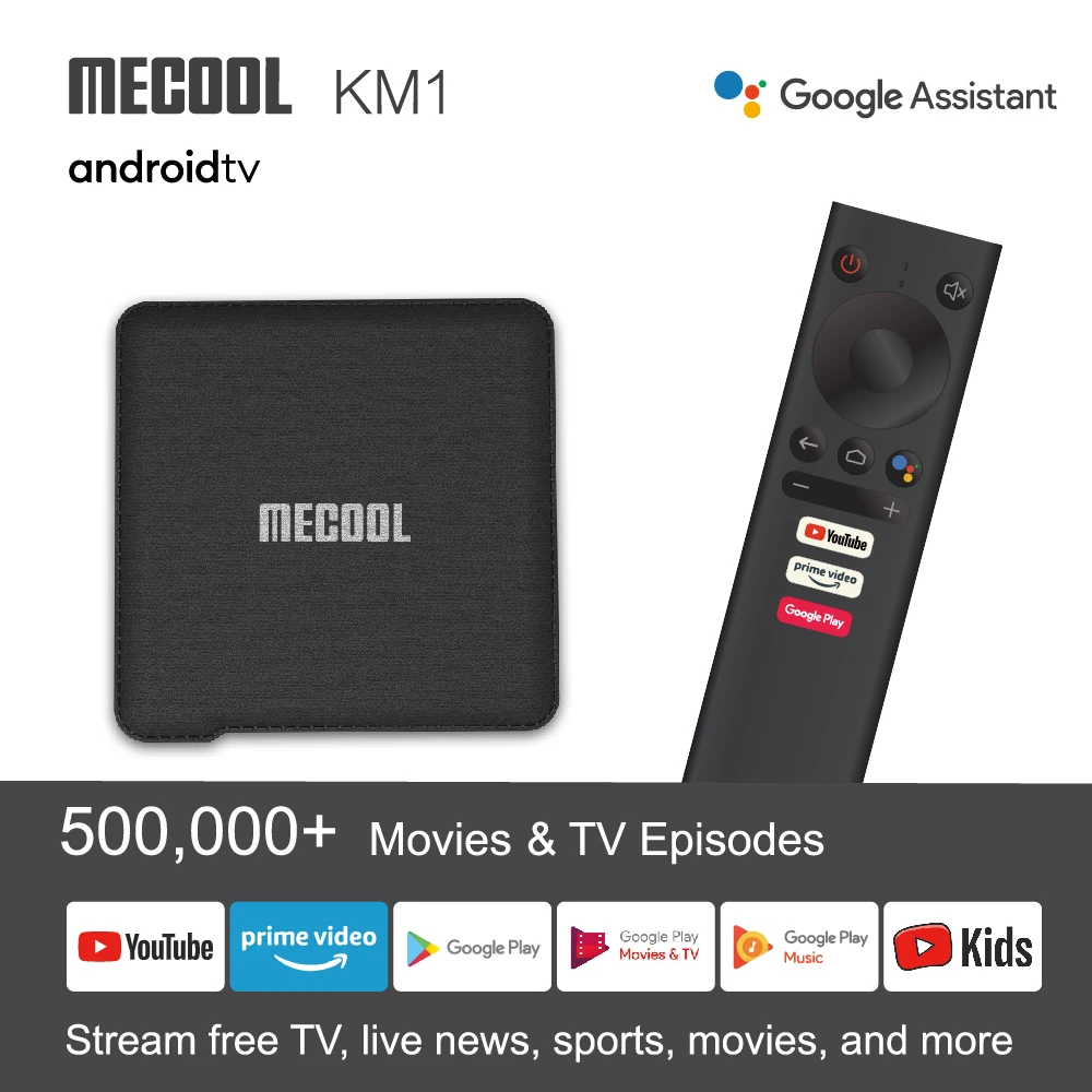 Mecool Google Zertifiziert Android 100 TV Box KM1 ATV Amlogic S905X3 2T2R WiFi Smart Androidtv Premium Media Player Prime Video.