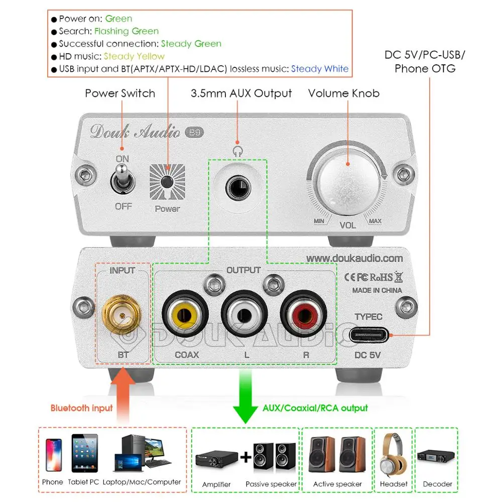 Neu Nobsound Mini CSR8675 Bluetooth 50 Empfänger ES9038Q2M USB DAC OTG Stereo Audio Amp APTX-HD HiFi Stereo Kopfhörer Amp