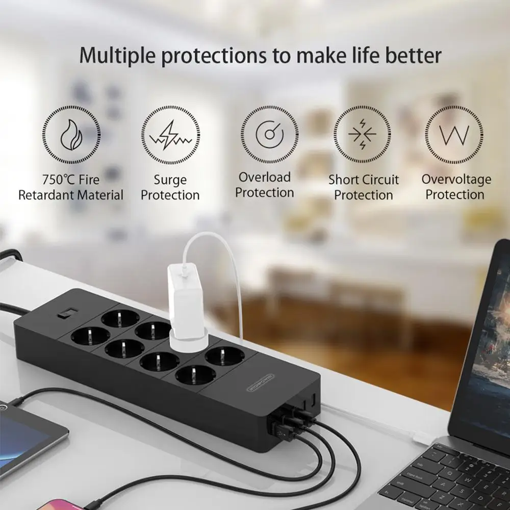 Promo NTONPOWER USB Power Streifen mit 3 Meter Verlängerung Kabel Netzwerk Filter 1700J Surge Protector für Home Wand Montiert EU Stecker