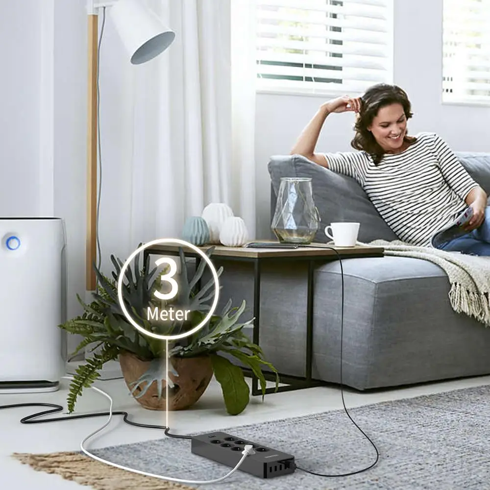 NTONPOWER USB Power Streifen mit 3 Meter Verlängerung Kabel Netzwerk Filter 1700J Surge Protector für Home Wand Montiert EU Stecker.