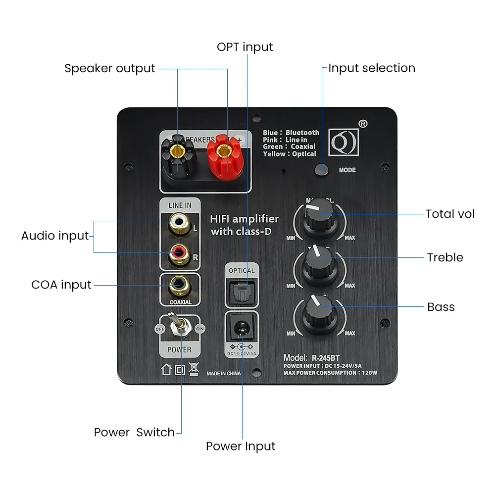 Audio input: Optical fiber coaxial Bluetooth/LINE IN