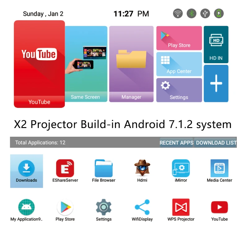 SmartIdea X2 Android 71 mini telefon projektor 200lumen 5G wifi bluetooth batterie für 3 stunden spielen touch tasten HD-In 1080P Beamer.