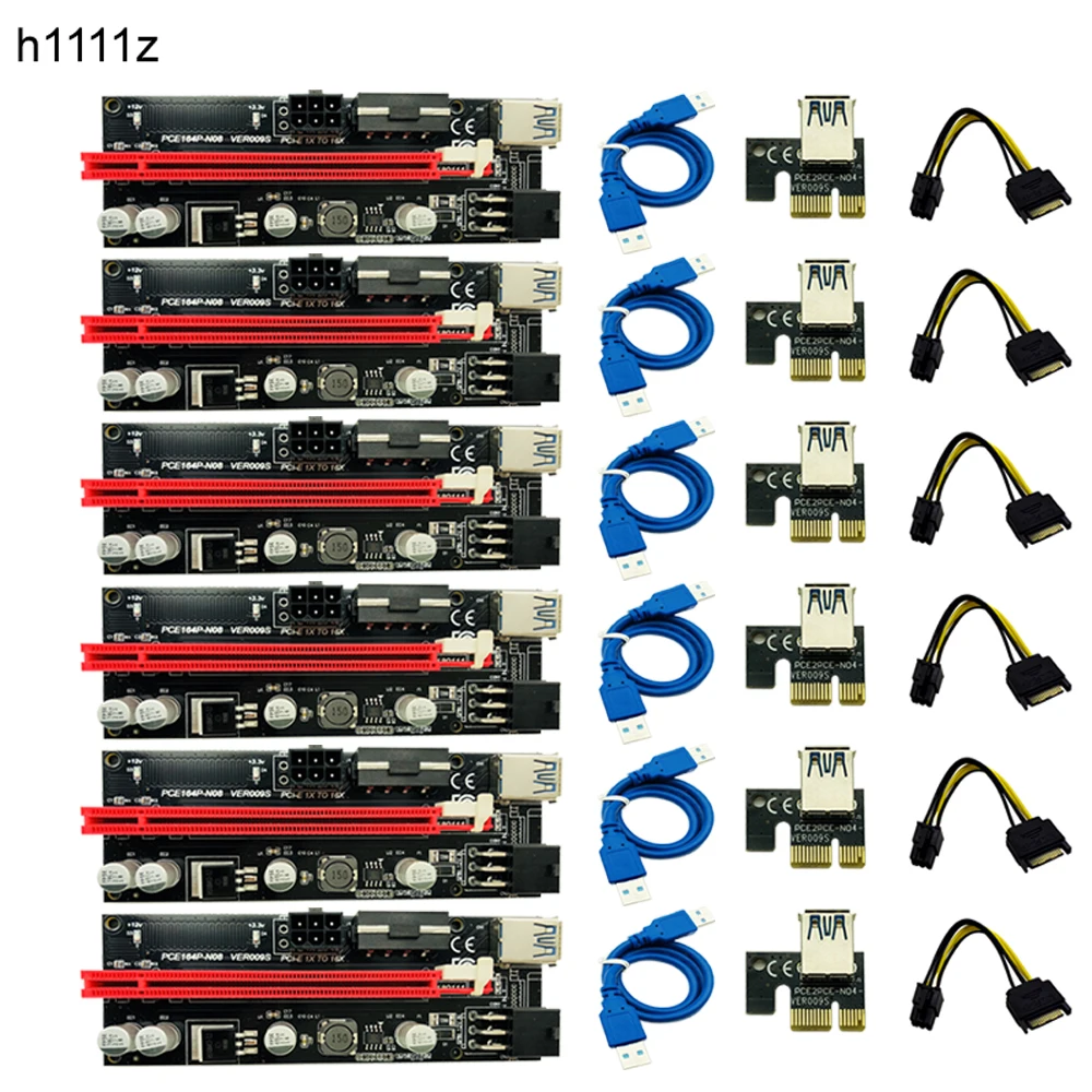 6 stücke Neueste VER009 USB 30 PCI-E Riser VER 009S Express 1X 4x 8x 16x Extender Riser Adapter Karte SATA 15pin zu 6 pin Power Kabel.
