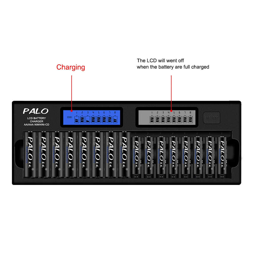 PALO 12-48 slots Smart Ladegerät LCD display Intelligente Batterie Ladegerät für 12 V AA AAA Ni-Mh nicd batterie.