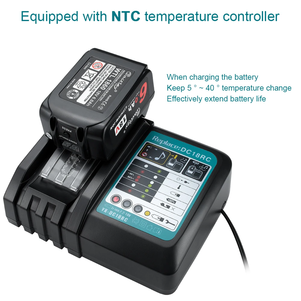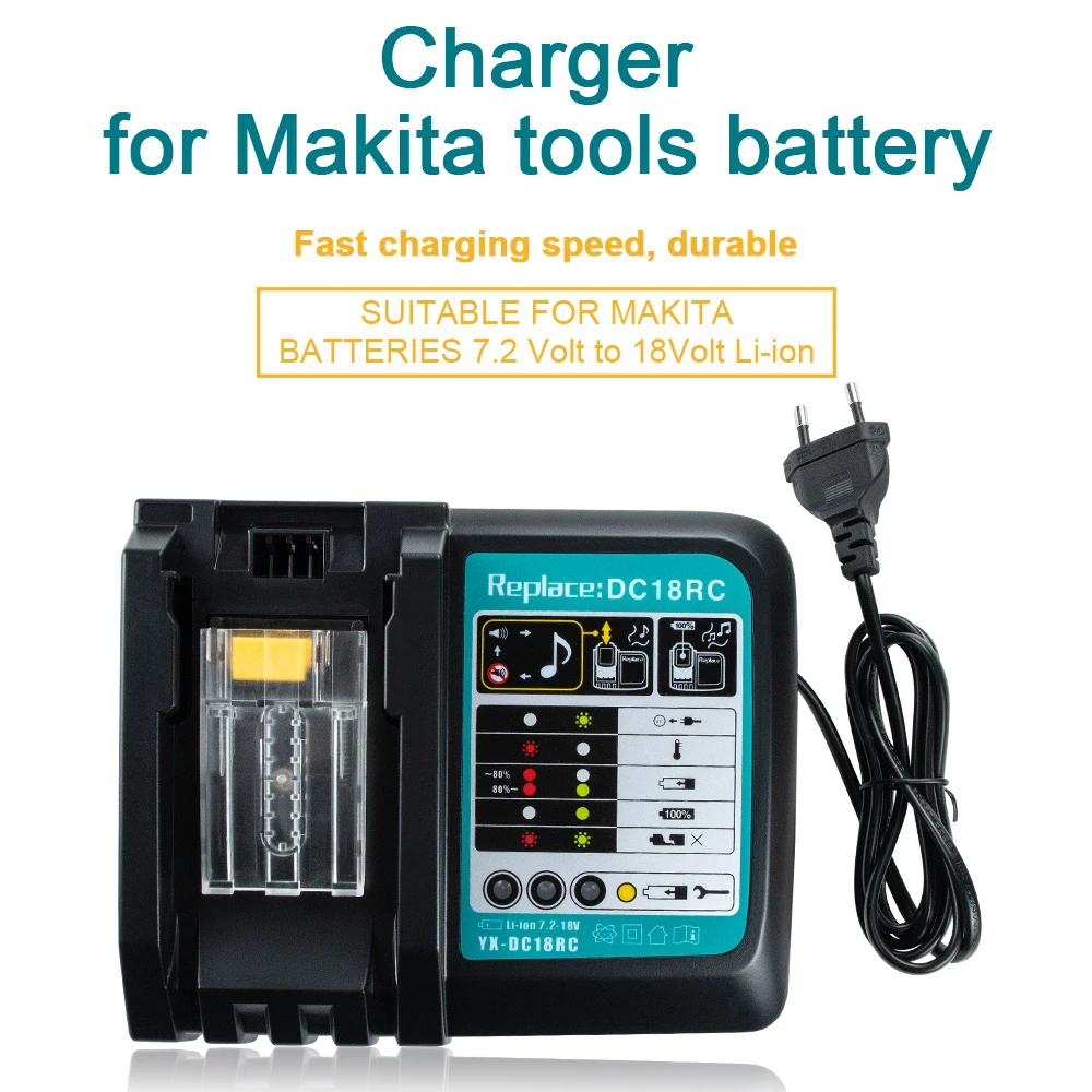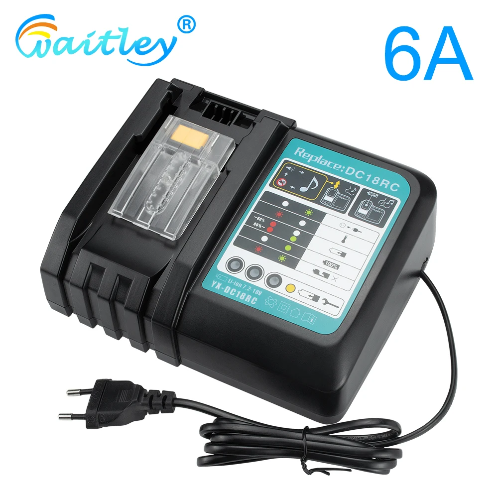 Bestes Angebot Batterie Ladegerät 6A Schnelle Ladestrom Für Makita 144 V 18V 72 V Werkzeug Akkus Eu Stecker 180W DC18RCT DC18RA 1290 BL1850 BL1860