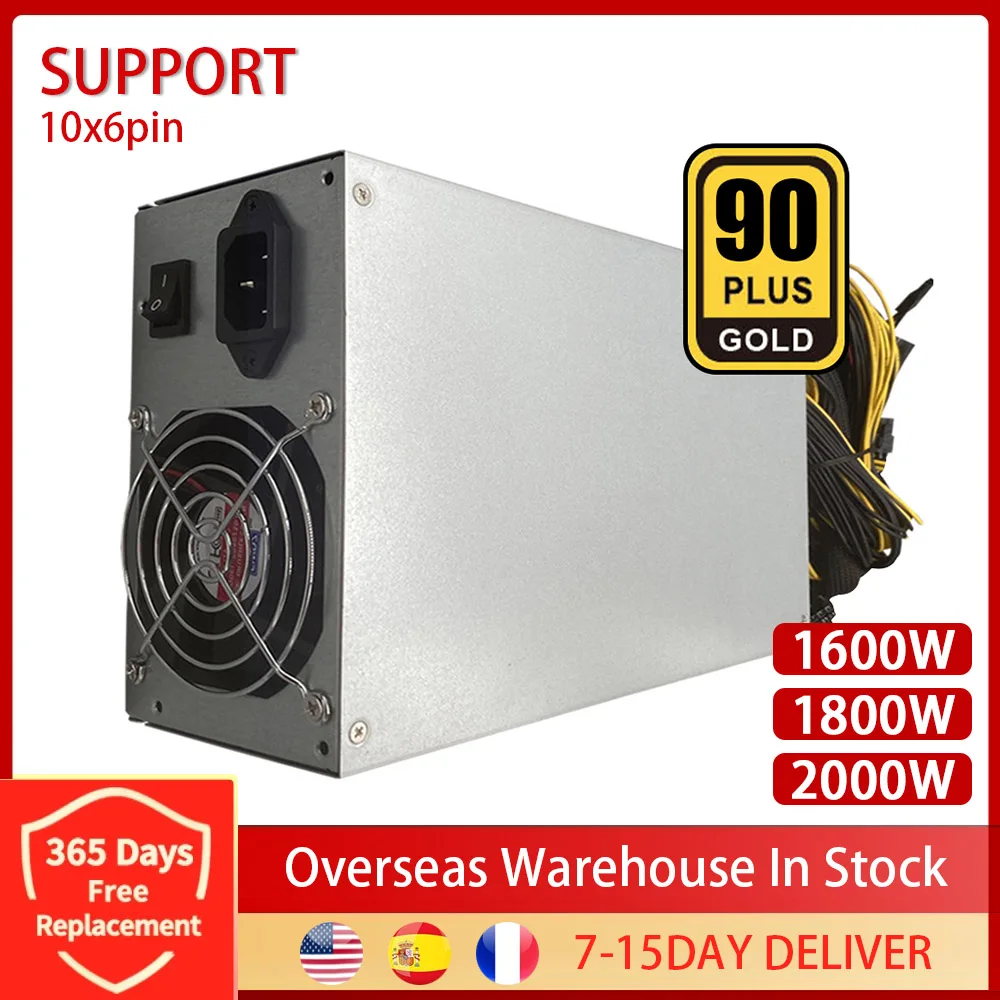 Bonus 2000W 1800W 1600W 180V-240V ETH Bergbau Bitcoin Netzteil Eingang 10x6pin 80%-90% effizienz Für Bitcoin Bergbau Ethereum Server