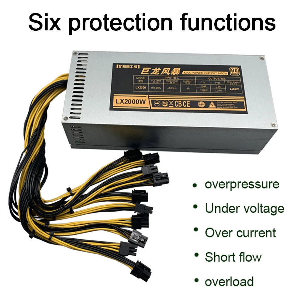 2000W 1800W 1600W 180V-240V ETH Bergbau Bitcoin Netzteil Eingang 10x6pin 80%-90% effizienz Für Bitcoin Bergbau Ethereum Server.