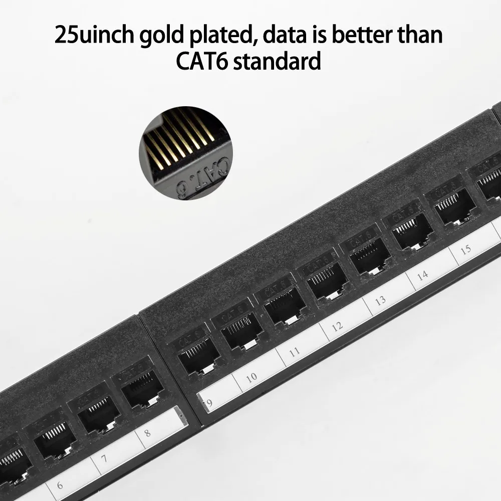 Garantie 1U Schrank Pass-durch 24 Port CAT6 Patch Panel RJ45 stecker Netzwerk Kabel Adapter Keystone Jack Modular Verteilung Rahmen