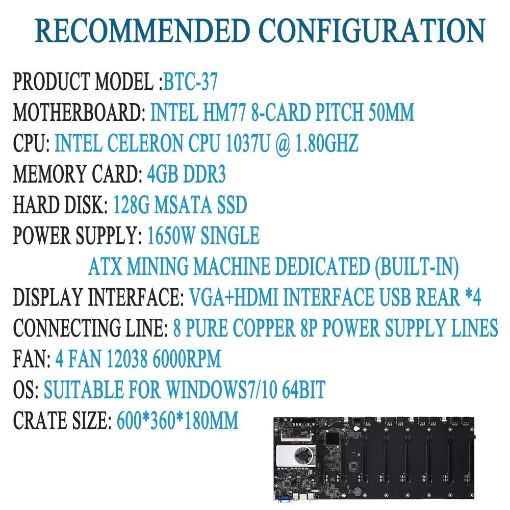 BTC-37 Bergmann motherboard CPU set von 8 video karte slots DDR3 speicher onboard VGA interface low power verbrauch.
