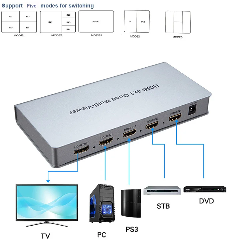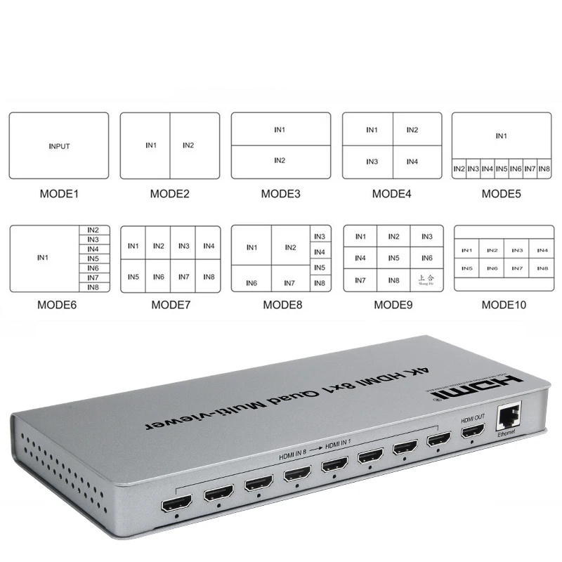 Neu 4K HDMI 8x1 Quad Multi-viewer Switcher 8 In 1 Heraus Nahtlose Schalter 4x1 multi Viewer PIP Bild Display Bildschirm Teiler Konverter