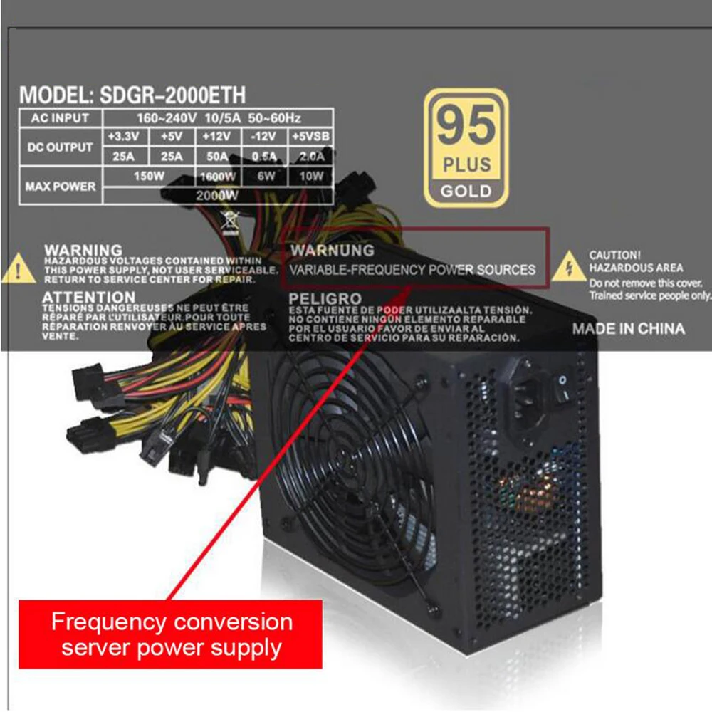 1800W Bewertet Miner Power Versorgung 95% Hohe Effizienz AC 180-260V ATX Bergbau Stromquelle Unterstützung 8 CPU Karte Max Bis zu 2000W.