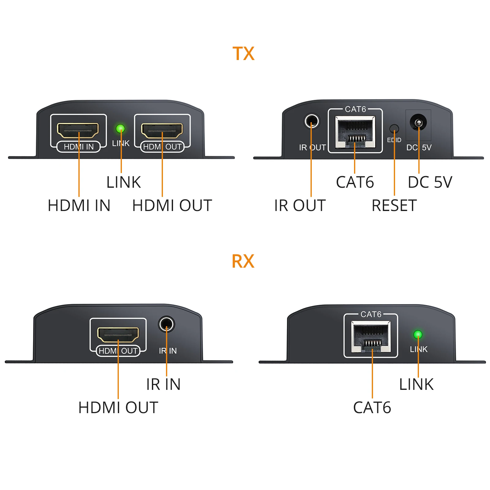 Neoteck 50m HDMI Extender Mit 2 Ports HDMI Splitter 1080p Über 50m RJ45 CAT6/CAT7 Kabel TX/RX mit IR Fernbedienung HDMI Extender.