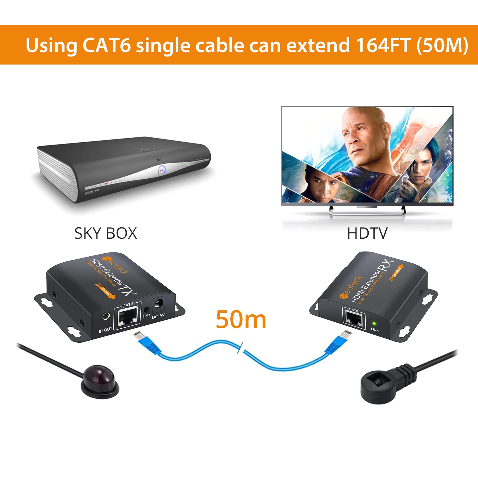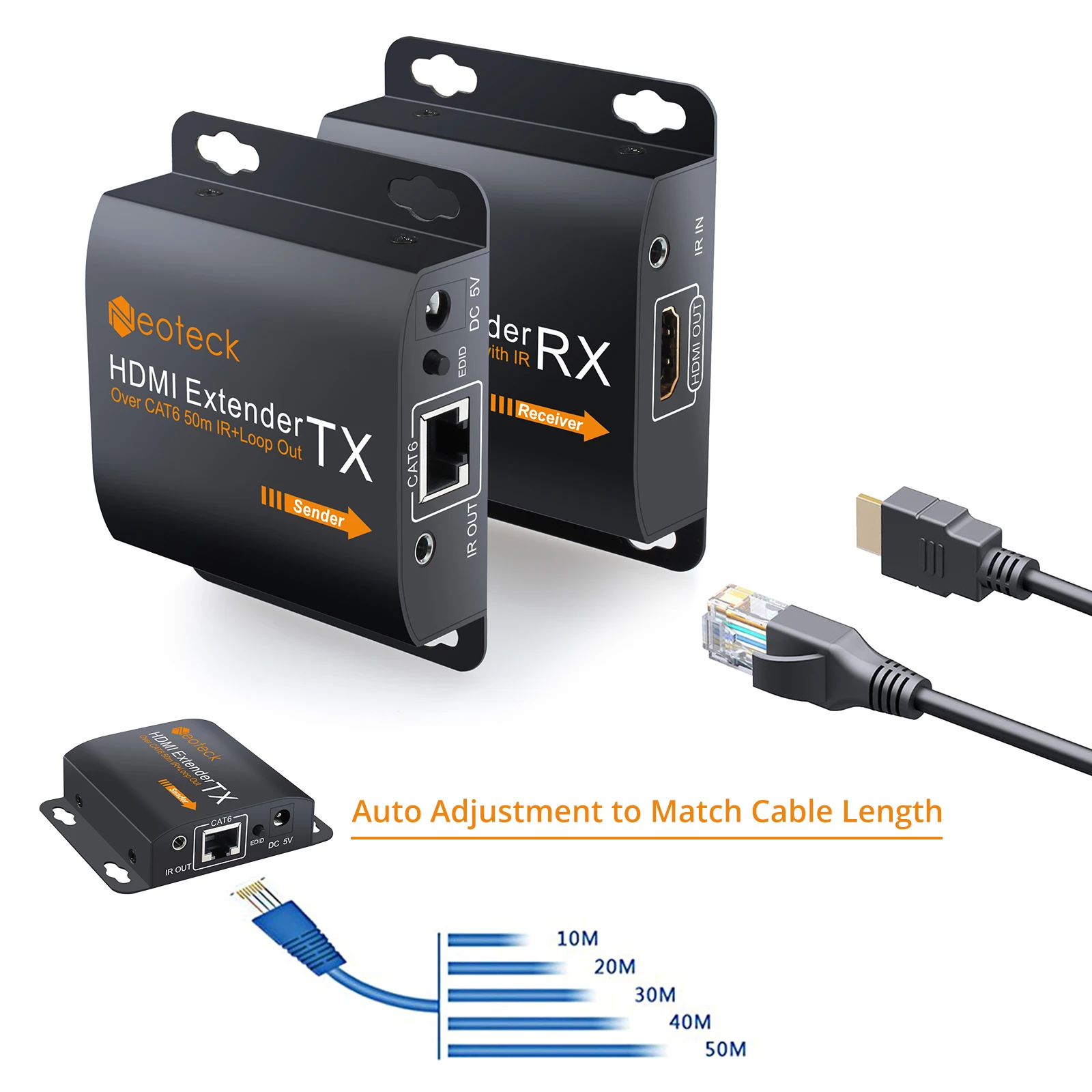 Promo Neoteck 50m HDMI Extender Mit 2 Ports HDMI Splitter 1080p Über 50m RJ45 CAT6/CAT7 Kabel TX/RX mit IR Fernbedienung HDMI Extender