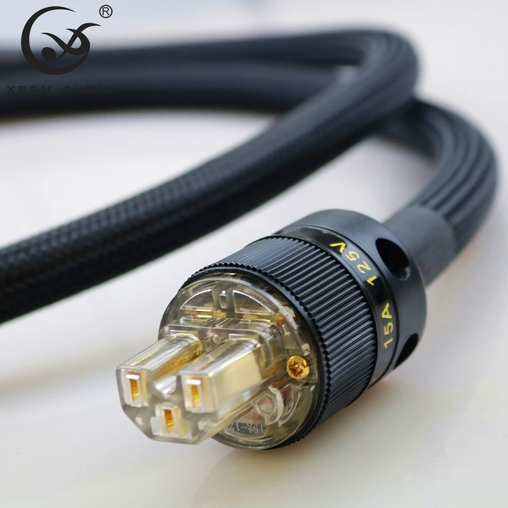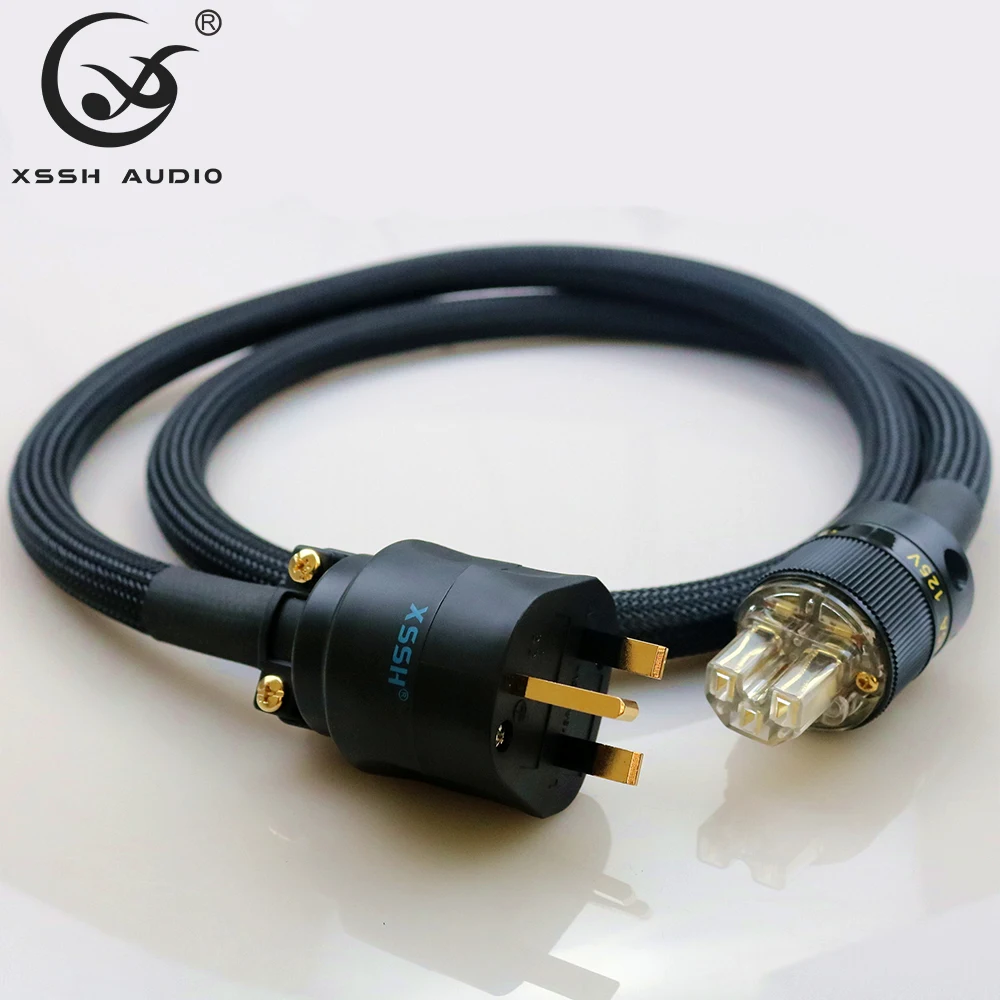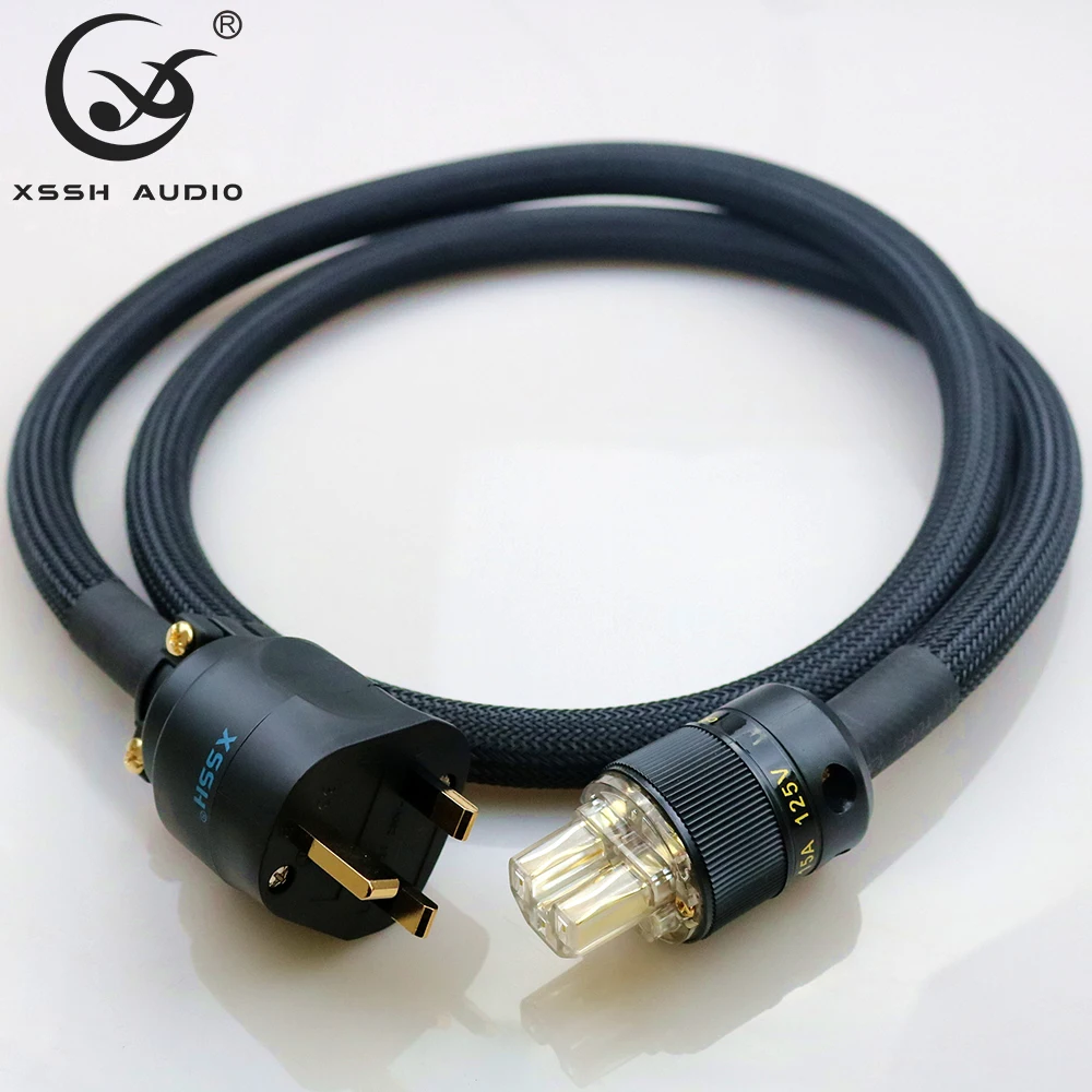 Promo XSSH audio YIVO FURUTECH HIFI verstärker OFC Reinem Kupfer Vergoldet UK IEC AC Weiblich Männlich Power Plug Power Kabel kabel Draht