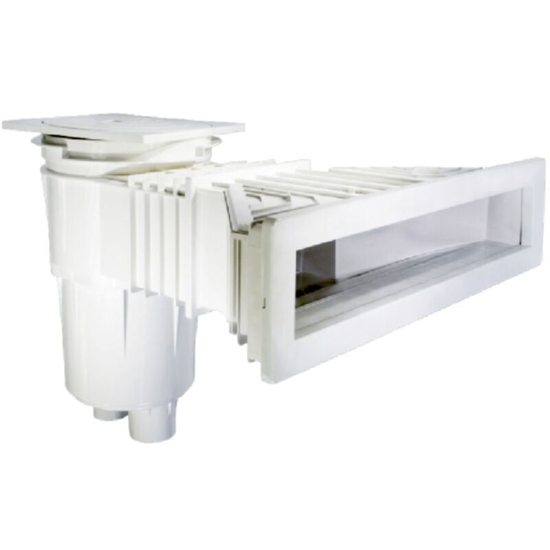 Skimmer miroir beton grande meurtrière + rallonge. Sa conception lui permet une intégration des plus discrète, tout en rapprochant le niveau d'eau à seulement 5 cm de la margelle. Sur une piscine traditionnelle, le haut du skimmer se situe entre 20 et 40 mm sous l'arase du bassin, et le niveau d'eau à respecter se situe 10 à 15 cm sous l'arase. Skimmer pour piscine liner, skimmer pour piscine béton ou bien skimmer pour piscine coque polyester, à vous de choisir selon le type de piscine que vous désirez ou que vous possédez.